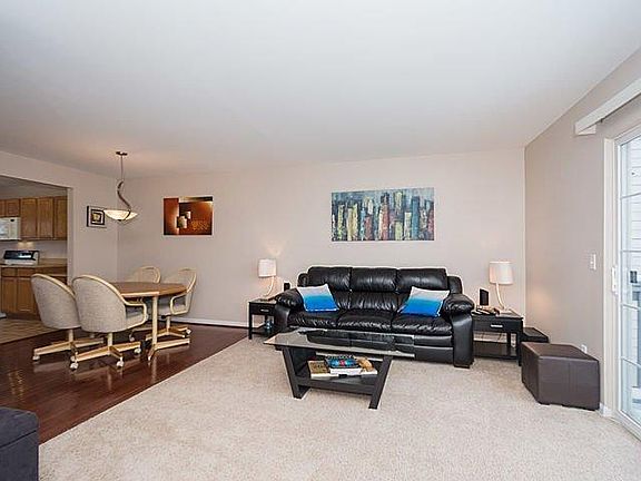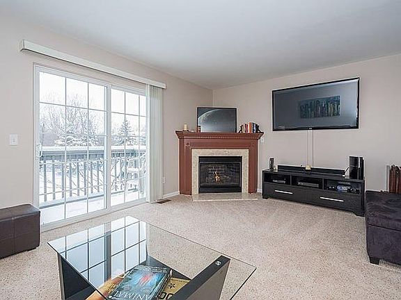 Stylish Madison Place brownstone condo is ready to move in with updated carpet, paint, lighting, door handles. Open living area with fireplace has a balcony and lovely view of driving range at Miles of Golf. Roomy kitchen has lots of counter space, oak cabinets and white appliances. Half bath completes this level. Two spacious bedrooms up have cathedral ceilings and share a large bath. Second floor laundry. Third bedroom in lower level has its own full bath, and could make a perfect home office. Attached garage with room for your car and extra storage, too. 1523 square feet of finished space (1233 square feet on the upper levels plus 290 square feet in the finished lower level). HSA Home Warranty included.
