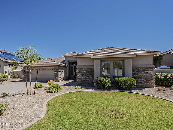 Located in the sought-after Allen Ranch community of Gilbert, this original-owner home sits in a private setting with only two neighbors. The spacious open floor plan offers 4 bedrooms, 2 baths, a 3-car garage, and lots of storage throughout. The open kitchen features Corian countertops and overlooks the living space, perfect for gatherings. The primary suite includes a bay window and private access to the backyard. Outside, enjoy your own resort oasis with sparkling pool, Baja deck, soothing water feature, spa, newer travertine decking, updated pool equipment, and mature landscaping. Close to shopping, dining, and freeway access.