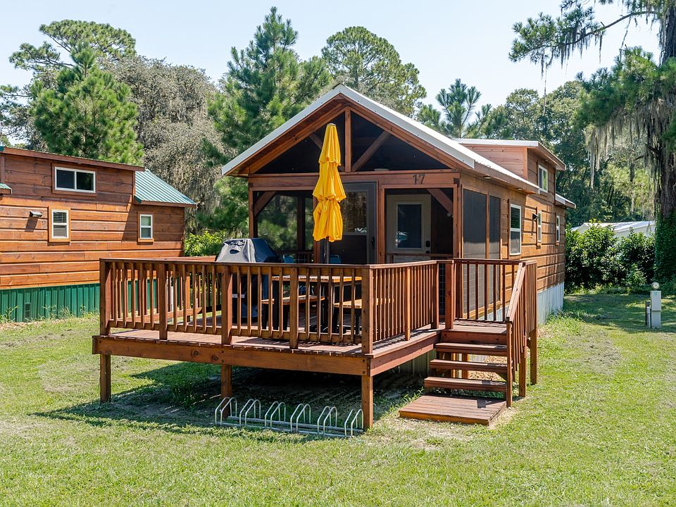 Whimcycle Trail has a collection of unique tiny home log cabins in an incredible location that offers a perfect combination of privacy and easy access to the most visited State Park in Florida, (Santos Trails) The Marjorie Harris Carr Cross Florida Greenway. Immerse yourself in nature, while you surround yourself in the wilderness of hiking, biking, equestrian and multi-use trails. Our homes offer affordable, charming, and environmentally sensitive living. Each cabin includes a 12'x12' deck, a 10'x10' screen room and a 8'x8' shed. Each cabin interior offers a rustic setting with modern amenities. As an added perk, you can use your home for vacation rental and for friends and family. Other on-site amenities include laundry facility, bath house, outdoor shower, bike wash station and community fire pit area. If you're seeking new experiences, outdoor adventures, and you value connections with like-minded individuals, then unplug, connect with nature and join our community at Whimcycle Trail Resort @ Santos.