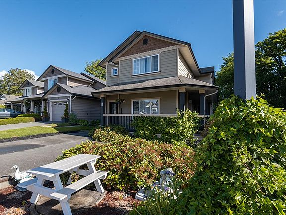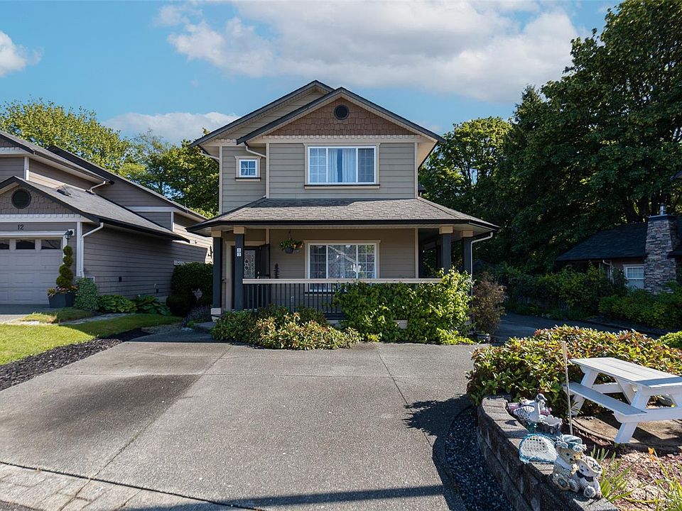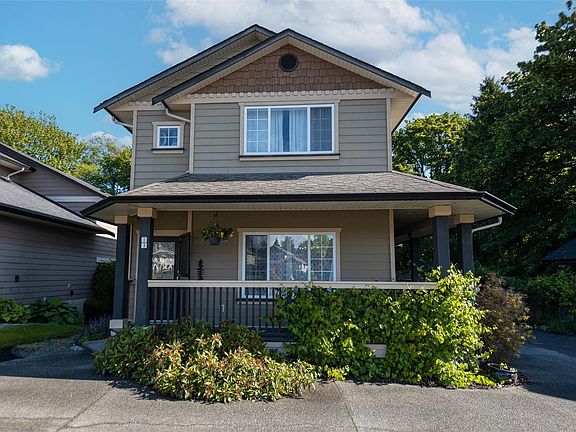 Welcome to this beautiful home in sought-after Brookside Gates! This 3 bedroom, 2 bathroom corner unit features a wrap-around porch for enjoying your morning coffee, beautiful hardwood floors, a large great room and dining room and lots of storage. As you enter the home you notice the open-concept layout, 9 ft ceilings, and warm natural gas fireplace perfect for cozying up with a book. The dining room is great for entertaining and the kitchen is bright featuring stainless steel appliances with a slider out to the backyard. Upstairs is a spacious primary bedroom with a walk-in closet and ensuite bathroom with a soaker tub. The other two bedrooms have lovely views out to the lush forested area. The sellers lovingly maintained this home and have done various updates including a furnace update (2025). The home has ample storage with a large crawlspace and storage shed with 10 ft ceilings. This home is conveniently located to recreation, grocery stores, and minutes to Downtown Duncan.