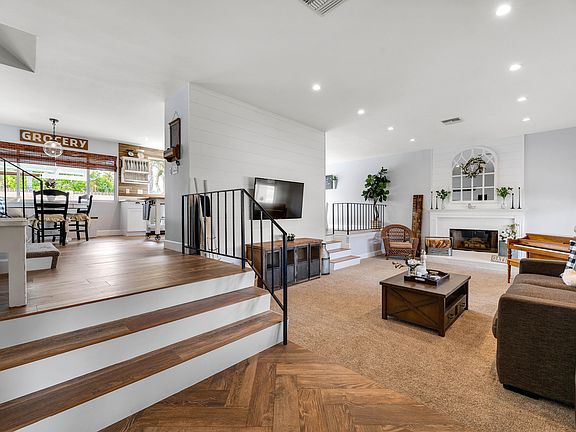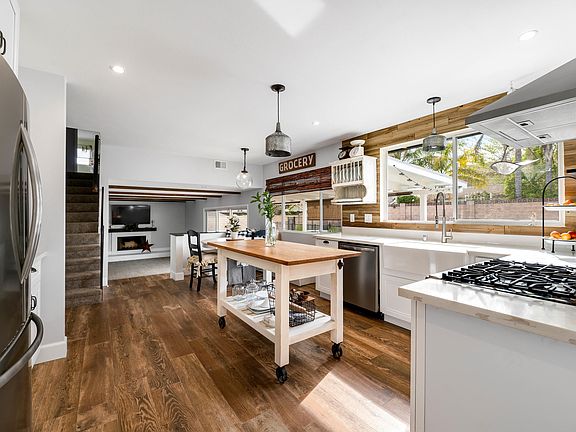 Upgraded and well-maintained Fountainwood home featuring six bedrooms, three bathrooms, 2,667 square feet, pool, spa and 9,082 square foot corner lot! Upon entering you will immediately notice the shiplap walls, high ceilings and wood-like tile leading you into the kitchen. The kitchen has been fully remodeled with white cabinets, floating shelves, quartz counter tops, and new appliances. Downstairs features two living rooms with fireplaces, laundry room, bathroom and two full bedrooms. Upstairs has four bedrooms and two bathrooms. Additional features include new solid wood doors, new air conditioning and vents w/dual zone and two nest thermostats, new cool roof and garage doors. The backyard has artificial grass for water conservation and is perfect for entertaining and spending time with guests. Close to restaurants, parks and freeways!