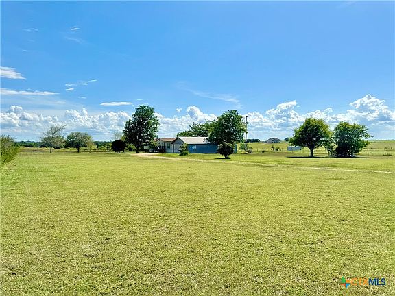 Ready to plant your roots in Shiner on a beautiful hilltop location just outside of the city limits? This 5+ acres gives you the opportunity of taking in those gorgeous south Texas sunsets and a view of the fireworks at the park for the New Year or 4th of July holidays! Only a short 1-mile drive to Shiner schools or 2 miles to downtown to enjoy all of the local shops & restaurants. This property features a 3-bedroom, 2-bathroom spacious manufactured home. With a welcoming entry into the living room displaying a cozy fireplace, open to the large dining area, it is an ideal open concept layout that even has a second family room on the opposite side of the infinite kitchen space. The primary en-suite has a shower and separate tub with double vanities and walk-in closet. The spare bedrooms also have walk-in closets. The extended laundry room has storage space and a door to the back yard. Double Carport has an additional storage or shop room, as well as another garage space for a small tractor or lawnmower. The property boasts mature trees and space to expand or build your future dream home with the water well and septic already in place! The back of the property has fences for livestock or horses. Book your showing today!