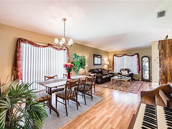 Nature lovers paradise. Very well maintained 1 owner home on 1/4 acre lot with pool, firepit, deck, and a pond that you can kayak on. This home features 4 bedrooms, 2 bathrooms, split floorplan rooms, open floorplan kitchen, dining and living room. Separate formal living and dining rooms. 2 car garage with mud room/laundry. Newer roof and A/C. Pool was installed in 2015. On a cul-de-sac and only 1.2 miles from Wiregrass Ranch High School.