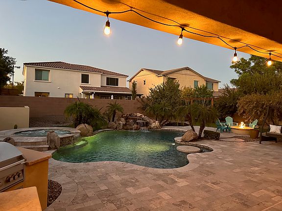 *Available November 22. This home is FULLY FURNISHED and equipped, and is managed by the owners who take great pride in making sure our tenants have a great experience.* Our newly updated super clean, luxurious, and spacious home is ideally situated close to everything Gilbert has to offer, while also being a comfortable, relaxing haven with beautiful pond views and a private backyard oasis. Perfect for snowbirds, families, remote workers, and extended vacations. With a large fully-stocked kitchen, a huge master suite with garden tub, three extra bedrooms (one with ensuite bath), an office space that accommodates two, and multiple living areas, it is super easy to spread out and make yourself at home here. Step outside and enjoy the pristine pool with waterfall, large in-ground jacuzzi, gas grill, and fire pit, or take a walk around the beautiful neighborhood with fishing pond, sports courts, and playgrounds. We want to make sure you have everything you need to comfortably relax, play, work, and make the best memories here. Let us know if there is anything we can do to help accommodate your needs.