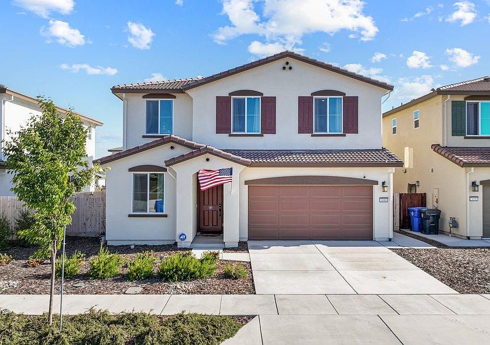 Welcome to this stunning 2023-built two-story home, designed for modern living and convenience. This property features 4 bedrooms and 3 full bathrooms, with a versatile loft that can easily be converted into a 5th bedroom to suit your family's needs. Step inside to discover a contemporary open-concept layout, perfect for both entertaining and everyday living. The kitchen features stainless steel appliances along with a smart refrigerator, and sleek countertops. Adjacent to the kitchen, the inviting living and dining areas are bathed in natural light. The living area includes a shiplap free standing fireplace, and the dining room has a lovely chandelier, both features creating a warm and welcoming atmosphere. Upstairs features 3 bedrooms, 2 bathrooms and a spacious loft. The primary suite offers a bathroom with double sinks, a walk in shower, and a generous closet. The additional bedrooms are equally impressive, providing comfort and privacy for family members or guests. Outside, the newly renovated backyard is a true oasis, featuring low-maintenance turf grass that stays lush and green year-round. This eco-friendly space is perfect for relaxing, playing, or hosting outdoor gatherings. Plus, the additional a of owned solar panels ensures energy efficiency. Don't miss out!