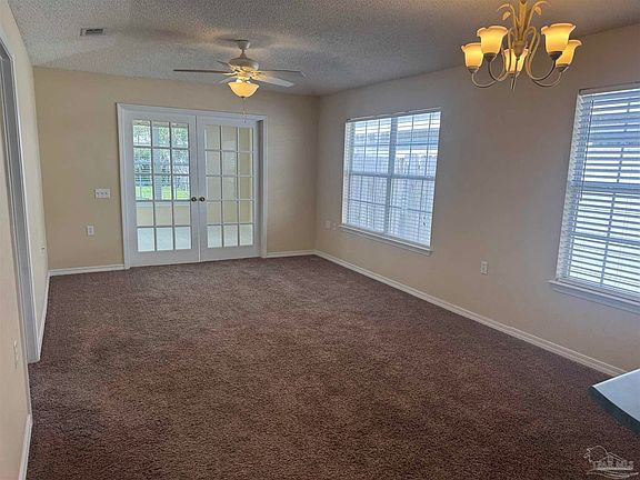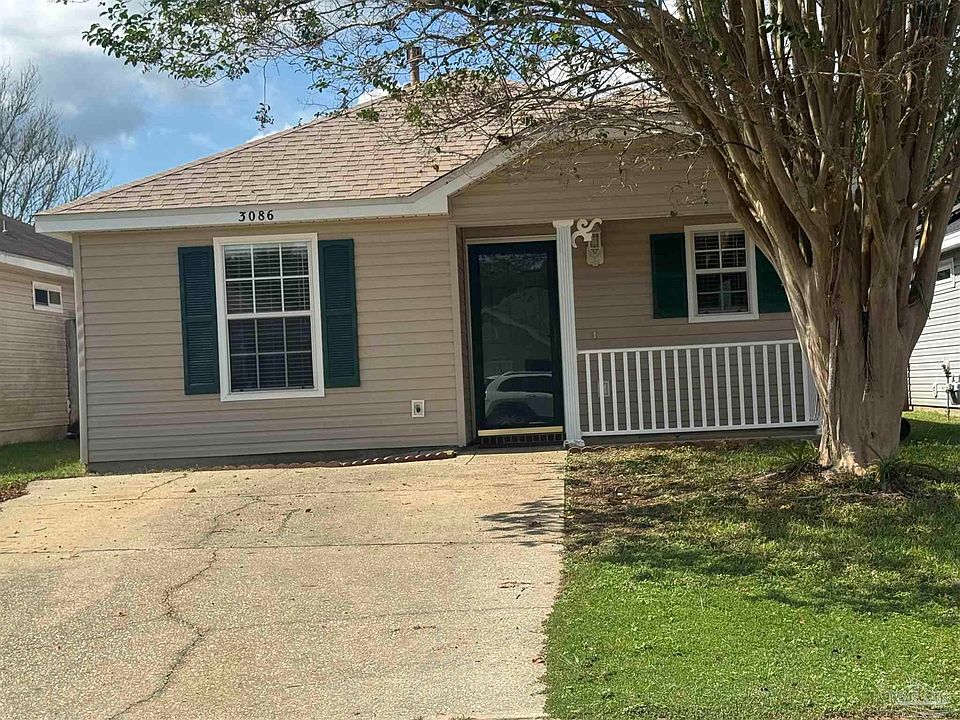 Adorable first time homeowner or investor cottage. Open floor plan with Living/dining room and kitchen with breakfast bar that opens to the living area. All brand new stainless steel appliances and new vinyl flooring in the kitchen, laundry and bathrooms. Master bedroom, ensuite bath and laundry room are located on the back on the home with an additional bedroom and full bath on the front. There is an additional bonus room with french doors that could serve a multitude of purposes. Let your imagination roam. There is a privacy fenced yard and open patio with an attached storage room at the back of the home. The family friendly subdivision has underground utilities, sidewalks, street lights and a covered picnic and playground area. Easy access to I10, back gate NAS, Navy Federal Credit Union, and a short drive to the beaches of Perdido Key.