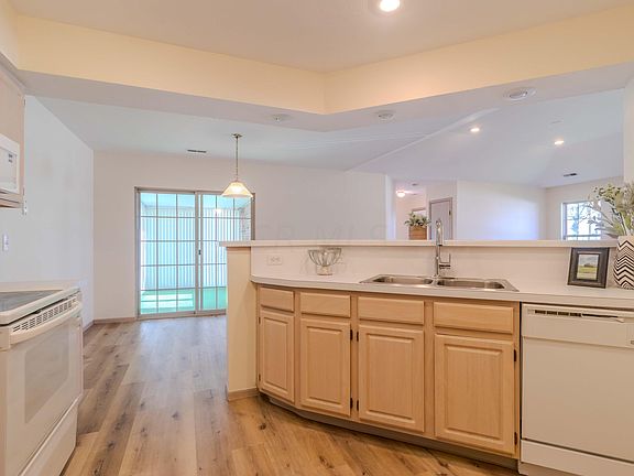Enjoy this RANCH condo situated in Village at Pine Manor! Floor Plan Features Large Open Living Room w/ Vaulted Ceiling, COZY Fireplace, Brand New Carpet/Wood Plank Floors (in 2024), Freshly Painted, New Faucets, Newer AC, Newer Microwave, Dining Area, Large Owner's Suite w/ Walk-In Closet & Private Full Bath! The Second Spacious Bedroom has loads of light and Private Bathroom. Large 1st Floor Laundry w/entry from Garage as well. You will absolutely love the openness & 3 season room perfect for relaxing or entertaining! 1 Car ATTACHED Garage freshly painted floors and all!! Pool/Clubhouse are an added bonus! Appreciate the Low maintenance living!