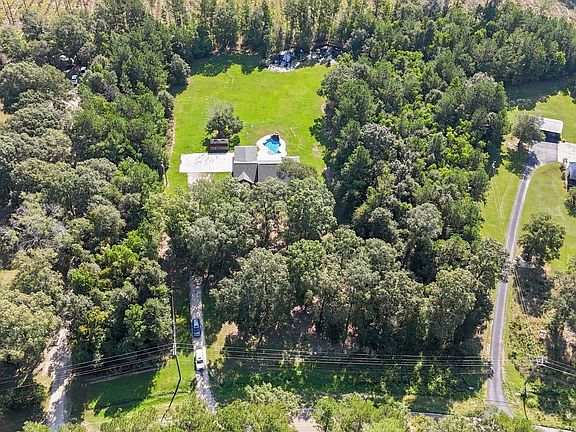 Welcome home to SERENITY! Perfectly set on a 3.75-acre lot, this 3-bedroom, 2.5-bath home offers privacy, space, and access to the "Great Outdoors" right at home. Located in Flood Zone X and has never flooded. GUNITE POOL + STORAGE BUILDING + NEW ROOF + STOCKED POND(bass, perch, catfish) + NO RESTRICTIONS/HOA = everything you've been searching for! This great home features an open and SPLIT floorplan with exposed brick wall, fireplace, and custom built bookshelves that add undeniable charm. Natural light pours through the kitchen and breakfast area! Plenty of room for TWO tables and/or sitting area off of the kitchen. THIS HOME IS SO SPACIOUS!! Interior features include stainless steel appliances, undercabinet lighting, granite countertops, ceiling fans in every room, & laundry room with window and room for freezer/extra fridge. The primary suite is large and peaceful has its own outside covered porch. Dual vanities + large jacuzzi tub & separate shower in the en suite! The additional 2 bedrooms and bathrooms are LARGE and can fit any size furniture. Step outside to discover an entertainer's dream featuring a GORGEOUS gunite pool complete with a creative waterfall design and sitting benches in the pool. The outdoor living spaces include covered porches, half bath (perfect for pool days) and concrete areas for gatherings or solo relaxing. Enjoy sunrises with the birds in the mornings and then a SHADED backyard in the evenings. The front yard has the perfect amount of mature trees --not near the home! The extra storage building will remain. The carport features an additional storage area with roll-up door that could be a small workshop, gym, or hobby room. There's tons of parking here with EASY turn-around capabilities—enough for 10 or more vehicles. Zoned for Doyle Schools (confirm with LP schoolboard). Country living yet 5 minutes away from the Town of Livingston. Come on home and ENJOY LIFE here. Call for an appointment.