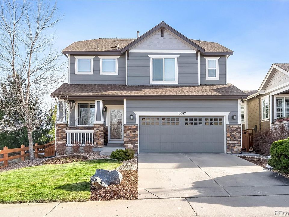 Updated two-story home with almost 3,000 finished square feet, four bedrooms, four bathrooms, and a finished basement. The covered front porch opens to a bright and airy living room sitting beside the beautiful open stair railing and showing off new flooring that extends throughout the main level. At the back of the home, a large great room makes a statement with two story ceilings, a gas fireplace, and coordinating built-ins. The dining room has room for a large table and features extended cabinetry and access to the back yard. Easily serve meals along the sweeping peninsula in this modern kitchen glistening with granite counters, custom backsplash, 42" cabinets, and stainless steel appliances including a sleek stovetop with double oven. Out towards the garage, convenience abounds with a half bath and large laundry room with rough-in for a utility sink, and extra space for your outdoor gear and kitchen storage. Upstairs, double doors open to the expansive primary suite with abundant natural light, a five-piece bathroom with soaking tub, and spacious custom walk-in closet. Two additional bedrooms and a bright, full bathroom are also located on the upper level. In the basement, a fourth bedroom and full bath allow for room for additional residents, guests, or a quiet office space. A fantastic recreation room is big enough for both games and entertainment. Outside, the backyard is engulfed in mature trees providing privacy and a perfect backdrop for outdoor living on the stamped concrete patio. The two-car garage features an exterior access door to the walkway around the house (perfect for trash day!). This home is conveniently situated just inside The Meadows. A community playground is a quick walk up the street and residents also enjoy access to The Grange community pool and miles of trails to the many neighborhood parks and schools, and easy access to I-25, Highway 85, the Shops at the Promenade, Miller Activity Complex, and Downtown Castle Rock.