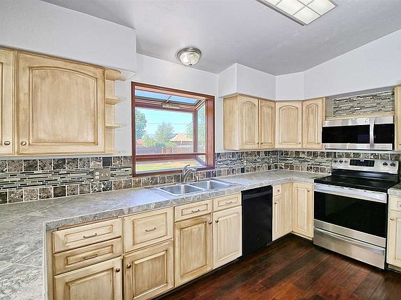 Beautifully redone Rancher on almost 1/3 acre w/ tons of RV & toy parking, more than 1400 square feet of concrete pad. This home has 3 beds,2 baths and a 2 car garage w/ built in shelving & a new epoxy floor. Hardwood floors have been beautifully restored. Large chef's dream kitchen with glass tile back splash, upgraded cabinets w/ roll out shelving + 2 lazy susans & stainless steel appliance package, including side by side refrigerator, stays. This home has a wonderfully versatile separate family room or formal dining area w/ 2 sets of French doors that lead out to the huge back yard, large garden area, ready for planting & even a shed. En suite master bathroom has been nicely updated, w/ a low step shower. New paint throughout and new hot water heater. Close to tons of amenities. Pride of ownership extends to the immaculate neighborhood on this quiet street.