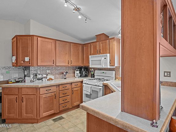 Tucked into the friendly community of North Ranch, this adorable home brings just the right mix of comfort and creativity. You own the land here—no lot rent, just your own sunny corner to enjoy however you like. Inside, the layout is cozy and practical, with natural light and all the essentials in place. Outside is where the fun begins. There's a separate climate-controlled space that's ready for whatever you dream up—office, craft room, workshop, or a little bit of everything. A shaded gazebo offers the perfect spot to sip coffee, read a book, or chat with neighbors passing by. Covered parking keeps your vehicle out of the Arizona sun, and the low-maintenance setup means you'll have more time to enjoy the laid-back lifestyle North Ranch is known for!