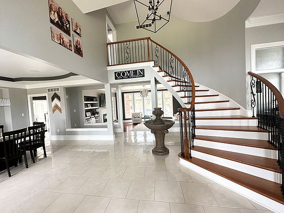 86 acres, gorgeous views and privacy. This 2-story custom Estate is located minutes outside of town featuring 2 stocked ponds and lots of wildlife. 5 bedrooms, 5.5 baths with almost 6500 sq. ft. of living space. Formal dining room is a show-stopper! Many impeccable upgrades including: 4 bedroom suites with walk-in showers, custom tile, hardwood floors, jetted garden tub, custom cabinets, Sonos surround sound inside and out and 2 electric fireplaces. As you enter you will be greeted with a cathedral entryway featuring a beautiful fountain and split staircase. The extra-large windows bathe the home in natural light no matter what time of day. The completely finished Walk-out basement is light, bright and open with a massive entertainment area and a extra possible bedroom.