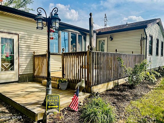 Located on a .56 A country lot just outside of Bellefontaine,but in the Ben Logan School District, this 1432 SF ranch home features 3 bedrooms, 2 full baths, 2 car attached garage, 3/4 basement as well as a detached 2-car garage, 24x32 outbuilding w/ electric, concrete floor, outside water source, 2 lean-tos and fenced rear yard. Owners were former dog breeders, so there are 5 inside kennels and 15 outside kennels which will stay. Some updates since owning the home include updated kitchen ( soft-close cabinetry and countertops, smooth-top range, 2-yr old dishwasher, stainless steel refrigerator & sink and breakfast bar), updated tilt-in widows, floor coverings, ceiling fans, 2 completely updated bathrooms (countertops, toilets, seated showers, faucets, LVP flooring and light fixtures). Large living room features gas-log fireplace, engineered hardwood floors leading into dining and breakfast bar area. Amenities include some original hardwood floors, lots of storage space, full appliance package including washer, dryer & water softener, and large wood decks on the front and back of the house. .Garage has a built-in landing with a large storage closet and access into kitchen/dining area. Master bedroom has an en suite bath. Basement foundation and waterproofing estimate is in attachments and a credit or escrow fund at closing will be part of a purchase contract if needed for financing.