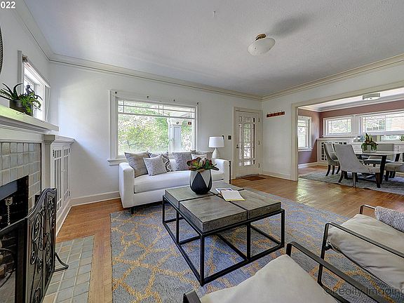Vintage light-filled 3BR/2 bath Laurelhurst Bungalow. Classic cabinetry with divided glass doors flanking living room fireplace and in dining room. Gorgeous hardwood floors on main level. Spacious bedroom upstairs plus bonus area for office. Downstairs is a partially finished multi-purpose room, full bath, laundry. Fenced backyard has sunny raised beds, chicken coop, play space, patio and shade trees. Blocks to Laurelhurst park, restaurants, businesses. Quiet w storm windows. Air Conditioned! [Home Energy Score = 3. HES Report at https://rpt.greenbuildingregistry.com/hes/OR10202966]