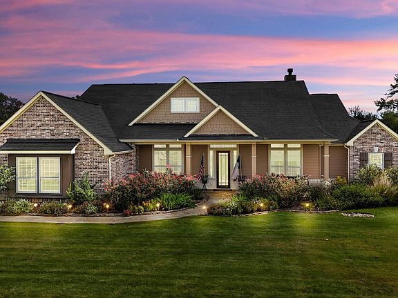 Welcome to 3088 Rolling Valley Ln, a stunning 3-bed, 3.5-bath custom home on 1.07 acres in Brenham. This 3,125 sq ft residence features two spacious primary suites, offering flexibility and privacy for guests or homeowners. Inside, you'll find a bright, open-concept layout with plantation shutters throughout, elegant finishes, and a dedicated home office with a hidden room — perfect as a safe room or storage. The gourmet kitchen flows effortlessly into the living and dining areas, ideal for entertaining. The oversized epoxy-finished garage adds style and function, great for hobbies or storage. Step outside to a beautifully maintained yard with new wrought iron fencing, and enjoy evenings around the outdoor fire pit under wide Texas skies. With thoughtful upgrades and timeless charm, this home blends comfort, space, and serenity in a desirable location.
