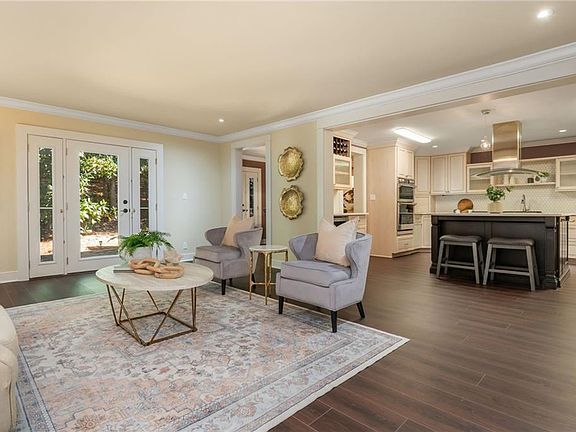 Welcome to Vinings Ferry, a tranquil community nestled on 15 wooded acres in Historic Vinings. This townhome offers a peaceful retreat just a short stroll from the vibrant Vinings Jubilee. The completely renovated townhome is one of the largest floor-plans in the community, offering plenty of space for everyone! On the main level, a welcoming foyer leads to well-designed living areas. Enjoy the convenience of a spacious living room with fireplace, a generously sized dining room, and a flexible den or potential fourth bedroom. The chef’s kitchen is the heart of the home with a large island complete with gas cooktop, countertop seating and a bar area with wine rack and two wine refrigerators. Top of the line stainless steel appliances, quartz countertops, tile backsplash and abundant cabinets complete the package. Upstairs, you'll find three bedrooms and two baths, along with a convenient laundry area. The master suite provides a comfortable escape, boasting a vaulted ceiling, a wall of bookcases, and a roomy walk-in closet. Step outside to the private back patio, offering serene views of wooded surroundings—an ideal spot for pet owners or those seeking peace and quiet. Convenience is key here, with prestigious private schools like Lovett & Westminster nearby, along with abundant shopping, dining, and recreational options, including access to the Chattahoochee River at Paces Mill Park, Truist Park and The Battery Atlanta. Plus, easy access to major highways like I-285 and I-75 ensures seamless travel. Enjoy low Cobb County taxes. This is an extraordinary opportunity not to be overlooked!