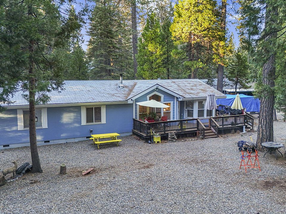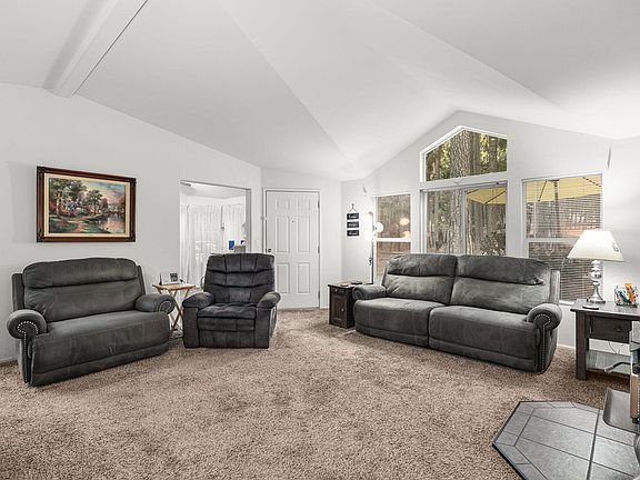 Welcome to this inviting 3-bedroom, 2.5-bath home situated on a quiet cul-de-sac and offered with two separate parcels. Featuring an open floor plan and vaulted ceilings, the main living area feels bright and expansive, centered around a cozy wood-burning fireplace. The spacious kitchen offers abundant storage, a center prep island.