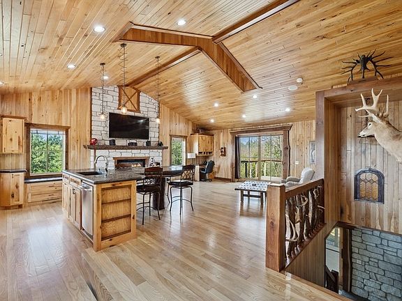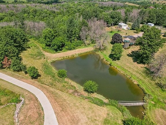 Welcome Home! You’ll FALL in Love with this Spectacular Walkout Ranch on 5 Acres with pond in great location! Perfect Oasis, quick escape from the city - No Gravel, only 11 miles to Mills Civic Pkwy! Outside the front entry, you’re greeted with a Covered Bridge! Step inside to open floor plan, vaulted great room & stone fireplace, inviting kitchen w all appliances & island. Primary BR w walk-in closet, private bath w heated floors, tile shower, & two sinks. Another BR, two guest baths, mudrm, & conv lndry rm. Fnshd walkout lower level with Heated floors, 2nd family rm w surround sound, two more large bedrms with walk-in closets, full bath, & ample storage. Maintenance-free 16 x 12 deck, patio, own ½ the pond, stocked for fishing! Quality thruout, you’ll appreciate the ICF (Insulated Concrete Form) built style, provides lower energy bills, energy efficiency, & amazing strength! Did I mention, this home is the 2012 Award Winner Iowa Concrete Association Iowa Home of the Year! Exterior is seamless steel siding & stone, geothermal heating/ac, whole house air filteration, all electric (no gas), cen vac, Warren County water, private septic system. 9’ celings on main & lower level & vaulted great room (all wood). Wood types: floors, walls, & ceiling – Knotty Ash; cabinets & doors – Knotty Oak; trim & accents – Knotty Walnut. Garage Enthusiasts will Love the oversized 32 x 36, 1152sf heated 4+ car garage with a mini garage storage inside the main garage! Tranquil Living!