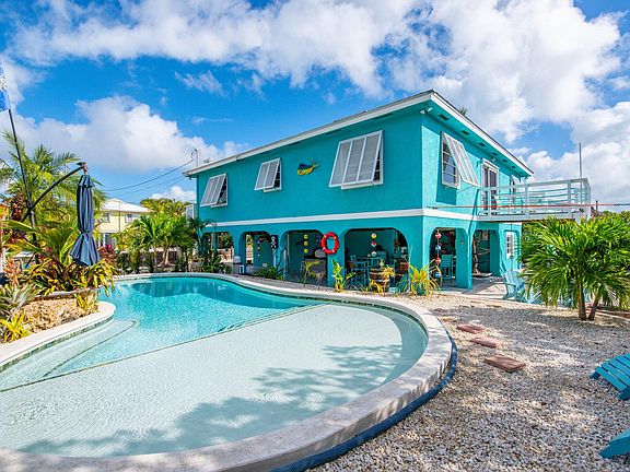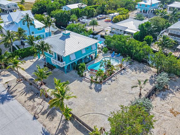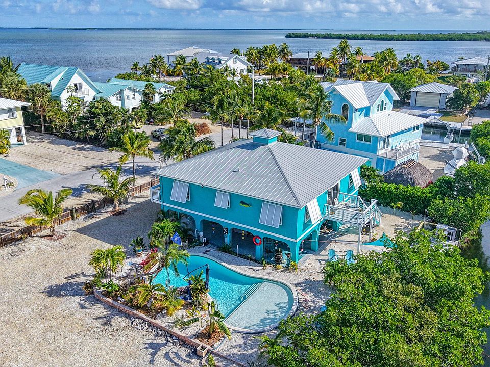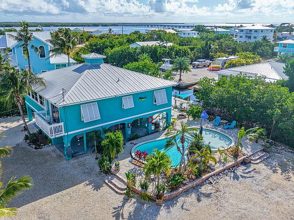 Welcome to your tropical oasis--where the true spirit of the Florida Keys comes to life. This spacious 3-bedroom waterfront home blends casual island style with relaxed coastal living, offering 1,764 square feet designed for comfort and ease. High ceilings lined with tongue-and-groove wood immediately set the island tone as you enter the open living space. The kitchen flows seamlessly into the dining and living areas, creating an airy gathering space perfect for entertaining. Additionally there is a recreation room which provides even more versatility--ideal for hosting guests, unwinding with a book, or enjoying movie nights. Step outside to an open sun-bathing balcony overlooking the water, with stairs leading directly to the waterside yard. The property spans two lots, offering a rare 120 feet of water (and street) frontage. With this much room, you'll have ample space for extra parking, a future tiki hut, or even a separate garage. The sparkling swimming pool sits conveniently beside the home, inviting you to relax and soak up the island vibes. Outdoor living takes center stage here: lounge on the patio, gather around the outdoor bar to watch the game, enjoy the boat dock, or feel the warm sand between your toes in the waterside yard.For boating enthusiasts, the dock provides quick access to open water--perfect for exploring the Back Country, Hawks Channel, or the nearby reef. Additional highlights include an EV charging station and an RV power hookup, full fencing, tropical landscaping, covered parking, and a ground-level storage area ideal for all your toys and equipment. Whether you're looking for a full-time residence or a vacation escape, this property is the ultimate Florida Keys retreat.