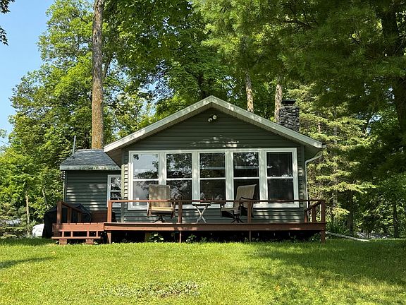 Turnkey opportunity on Elm Island Lake! 2 bedroom seasonal cabin with incredible view from the large lakeside 3 season porch. Some newer knotty pine walls, newer siding, deck and circuit breaker panel, updated half bath (no shower), and includes the newer 100' roll-in dock! Most furnishings, kitchen wares, and newer linens included so you can start enjoying right away. MLEC Fiber internet available at the street. Make this your cabin getaway in the heart of the lakes area where recreational opportunities abound! Compliant septic.