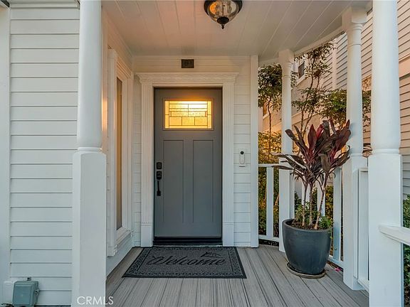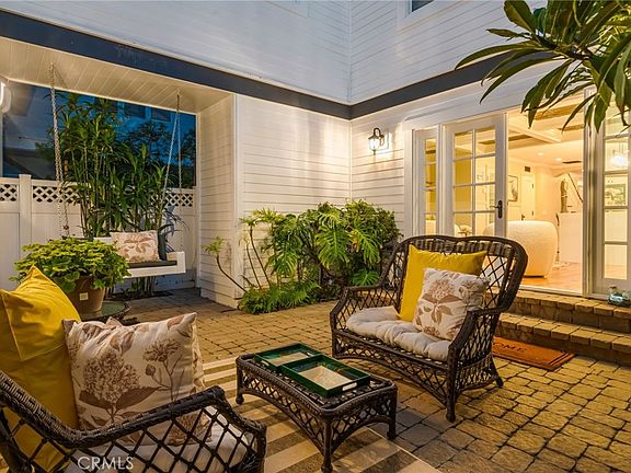 This Extraordinary custom-built beach home is located two blocks from the sand, in one of Huntington Beach’s most desirable coastal neighborhoods. This home stands out for its exceptional craftsmanship, timeless architectural details, and thoughtful design that blends coastal charm with upscale living. From the moment you arrive, the home impresses with its Victorian-inspired turret façade, wrap-around balconies, and picture-perfect curb appeal. Inside, every room showcases artisan-level detail, including coffered ceilings, rich wood flooring, custom millwork, and beautifully integrated built-ins. The heart of the home is the expansive chef’s kitchen, featuring a large island with Calcutta gold quartz, bar seating for five, custom cabinetry, a vintage-inspired range, and open shelving. The kitchen flows seamlessly into the light-filled family room, highlighted by intricate ceiling panels and French doors that open to the courtyard. Multiple entertaining spaces, both upstairs and downstairs, make this home ideal for gatherings. The welcoming formal living and dining rooms offer warm millwork, wainscoting, and cozy sitting areas, including a charming elevated lounge framed by columns and a brick alcove. Upstairs, the spacious primary suite is an oasis of comfort with its own private balcony, a sitting area, and plenty of natural light. The spa-inspired primary bathroom features a claw-foot soaking tub, a walk-in shower, and elegant finishes. Additional bedrooms are well-appointed, with custom wall treatments and coastal décor. The upstairs also includes a home office, complete with built-ins, and access to another balcony with ocean breezes. This home offers unique, high-value amenities rarely found this close to the beach, including: A full media/theater room with tiered leather seating and a massive 125-inch screen, A rooftop deck with hot tub, panoramic sunset views, and space for lounging or dining, Multiple balconies with neighborhood and palm-tree-lined sightlines, A private courtyard patio perfect for morning coffee or evening relaxation. This home is in the boundaries of Agnes L Smith Elementary, Ethel Dwyer Middle, and Huntington High—all highly rated schools. Enjoy the oceanfront bike path, Pacific City, Huntington Beach Farmers Market, and Surf City Nights. The pier and popular off-leash dog beach are within walking distance. Your dogs can enjoy the sand and the surf while you relax.