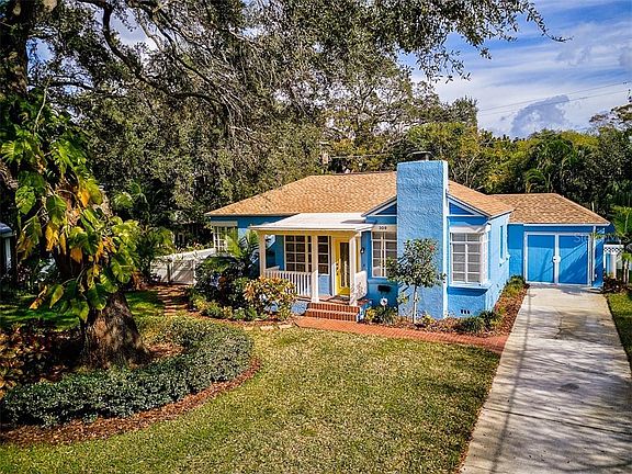 Imbued with classic Florida charm, this beautifully updated bungalow is situated in Bradenton, central to the riverside city's vibrant downtown, natural beauty, and beautiful sandy beaches. Presenting a façade right out of a storybook, a brick path leads to the welcoming front porch into the vestibule. The interiors have been immaculately updated, boasting open and bright spaces brimming with natural light, crown molding, and wood floors. Relax or entertain with equal parts finesse in the living area - comprised of the dining room and living room with stately fireplace. The deluxe chef's kitchen includes stainless appliances, granite surfaces, and rich wood cabinetry. The family room is a haven for board games, good conversation, or reading, poised to overlook the pool area. The master suite offers a walk-in closet and bath with walk-in shower. The guest bedroom includes built-ins for hiding away clutter and displaying memories while an office/den provides a versatile setting for your needs. Creating an outdoor oasis, spend sundrenched Saturdays on the enclosed lanai, complete with sparkling pool and covered entertaining area. A laundry room and detached garage complete the picture. Near the Manatee River, this delightful home is situated in one of Bradenton's most historic and sought-after neighborhoods with shopping, dining, schools, culture, and beaches just a short drive away.