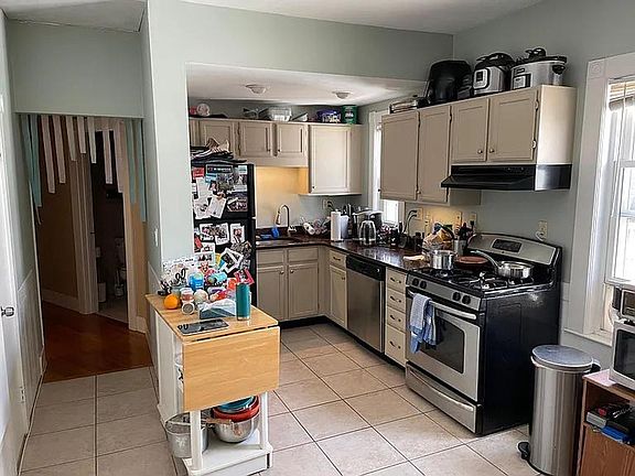 Charming 3-bedroom, 1-bath apartment in a classic two-family home just steps from Moody Street's shops, restaurants, and commuter access. This spacious second-floor unit offers hardwood floors throughout, a large open living area, an eat-in kitchen, in-unit laundry, and a private rear porch. With nearly 1,030 sq ft of living space, it's ideal for roommates or a small family. Gas heat and electricity are tenant-paid, while water, sewer, landscaping, and snow removal are covered by the landlord. Available for September 1st move-in, street parking only.