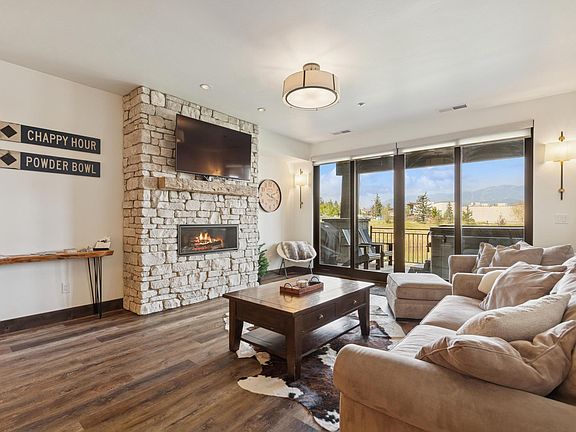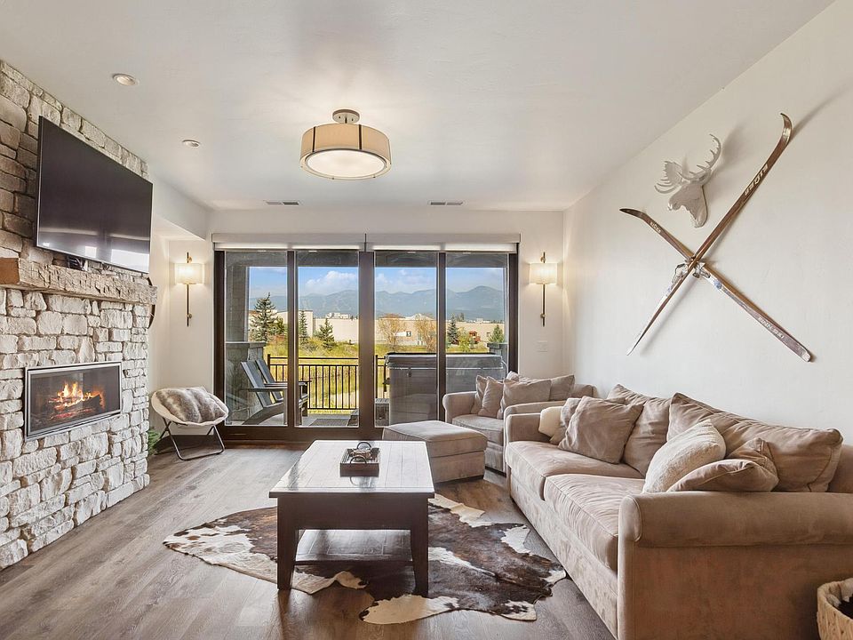 Turn-key and ready for short-term rental or personal getaway, this north-facing ground-floor condo offers nearly 1,500 sq. ft. of thoughtfully designed living with quality finishes throughout. Two spacious bedrooms with ensuite baths capture serene water and mountain views, while the open floor plan showcases a stone fireplace and 9’ ceilings with solid 8’ wood doors. Relax on the covered deck with a hot tub and BBQ as you take in striking views of Big Mountain/Whitefish Mountain and Eagle Lake. A private detached garage provides convenience, while meandering paths lead to community fire pits and a shared waterfront dock. Just a short stroll to the Whitefish SNOW Bus for easy access to world-class skiing and all the recreation this sought-after location has to offer. The. Eagle Lake community is just down the street from the vibrant downtown with restaurants, live music and night life. This property is being sold furnished. Call today for a tour!