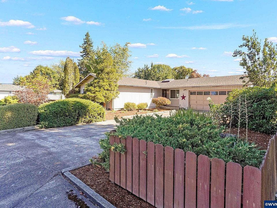 4-bedrooms! Or 3 beds w/ an office, either way there is plenty of space in this ranch home! Bright living room w/ large windows to the backyard, vaulted ceiling & a wood burning fireplace. Efficient kitchen with newer refrigerator included, and washer/dryer also included. Single story easy living & 4th bedroom would make a great home office w/ patio slider to backyard, 2 FULL Baths. Fully fenced backyard w/ deck, shed & greenhouse. Close to WOU, school, parks & shopping.