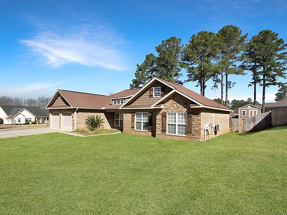 Spacious Brick Home with Pool on Large Corner Lot! Discover this immaculate 4-bedroom, 2-bathroom split-floor plan home featuring an open layout with hardwood and tile flooring throughout. The elegant custom baseboards, crown molding, and vaulted ceilings in the master bedroom and family room add a touch of luxury. The kitchen boasts custom hardwood cabinets, granite countertops, and a breakfast bar, perfect for entertaining. The owner's suite is a true retreat with a huge walk-in closet, custom cabinetry, and granite vanity. Step outside to your private backyard oasis—a large screened porch and sparkling pool with a safety fence, all surrounded by a privacy fence. Two separate storage buildings provide ample space, and an additional concrete pad offers RV parking. Located in the quiet, well-maintained Bellwood neighborhood, this home is convenient to schools, shopping, and Ft. Novosel. All pool equipment included! Don't miss this incredible opportunity—schedule your showing today!