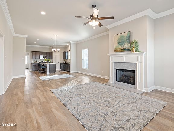 Beautiful 4-bedroom, 3-bath home, only 4 years old, offering a spacious single-story layout with an inviting open floorplan. The kitchen is a standout with its large island, granite countertops, abundant cabinetry, stainless steel appliances, and a gas range--perfect for cooking and entertaining. The adjoining dining area and living room features a cozy fireplace and plenty of windows that fill the space with natural light. The primary suite is spacious and offers plenty of room for your furniture needs along with an en-suite bathroom that provides a soaking tub, a separate shower and a huge walk-in closet. The home is built with quality in mind, including a tankless gas water heater, radiant barrier roof decking, and a post-tension slab for added durability. Enjoy extra privacy with no backyard neighbors. Don't miss the subdivision amenities in Sugar Ridge: a community pool, playground, swings, and walking trails. Located just minutes from the Youngsville Sports Complex, shopping and dining, this home blends comfort, efficiency, and convenience. Don't miss this one!