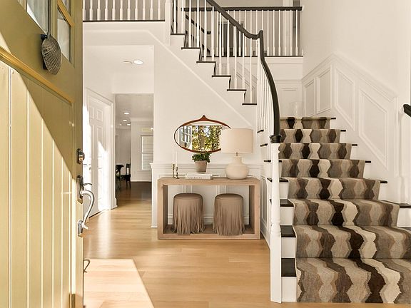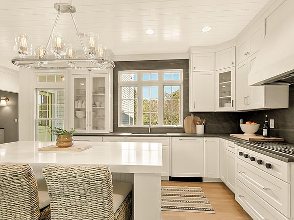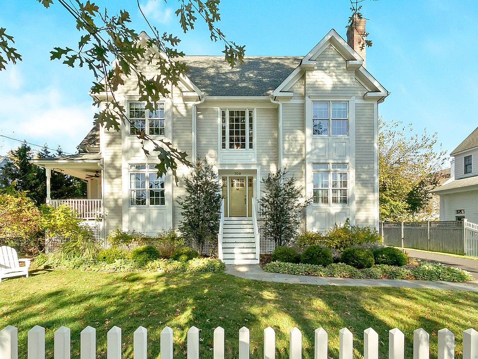 Inspired living meets coastal New England charm at 309 Birch Road in Fairfield. This thoughtfully designed home in the beach area blends elegant millwork, hardwood floors, transom windows, plantation shutters, and custom built-ins with natural light throughout. The two-story foyer welcomes you to superior craftsmanship, leading to a private office and front porch, formal dining with wood-burning fireplace and built-ins, and a serene living room overlooking lush grounds. The heart of the home, the eat-in kitchen, features Wolf appliances, Waterworks fixtures, honed Pietra Cardosa schist stone, white cabinetry with seeded glass, a quartz island, and breakfast area opening to a two-story family room with vaulted ceiling, brick fireplace, built-ins, and beverage nook. Upstairs, four bedrooms include a primary suite with tray ceiling, spa-like bath, and dual walk-in closets. Three additional bedrooms on the second floor have unique attributes- custom built-ins, window seats, stylish wallpaper, and gorgeous views A finished third floor adds a 5th en-suite bedroom and bonus room. The fully fenced-in yard, bordered by beautiful landscaping offers space to relax, play, or dine al fresco. A two-car attached garage completes this home, w/ 20 ft ceilings, plenty of storage, and the potential for a lift adding a desirable element for any car enthusiast. Perfectly positioned for the coastal lifestyle of your dreams, this home is just a short stroll to the beach, schools, train & downtown