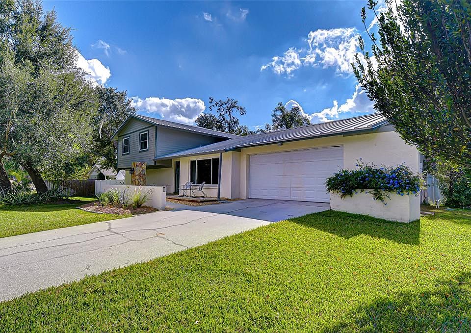 Nothing short of amazing! This beautifully updated 4-bedroom, 3-bath home offers approximately 2,200 square feet of living space on an oversized corner lot in the highly desirable Bloomingdale community. Step into the welcoming foyer, where the formal living room sits to your right—ideal as a home office or flexible living space. The updated kitchen features wood cabinetry with pullout shelving and soft-close drawers, granite countertops, a large center island, and a breakfast bar—perfect for entertaining and everyday culinary enjoyment. Premium Electrolux appliances include a full-size refrigerator and matching full-size freezer, range hood, convection oven, microwave, and dishwasher. Adjacent to the kitchen, the spacious family room boasts a wood-burning fireplace and overlooks the screened-in paver patio and brand-new wood deck that spans the back of the home—an ideal setting for relaxation and gatherings. Upstairs, the primary suite offers a private, updated bathroom with granite countertops, dual sinks, a large walk-in shower, custom vanity, and a generous walk-in closet. Two additional bedrooms share a beautifully appointed full bath with a tub/shower combo and custom vanity. A versatile fourth bedroom is located on the lower level and includes its own full bathroom—perfect for guests, a mother-in-law suite, home office, or flex space. The large backyard provides ample room for outdoor enjoyment, gardening, or future enhancements. Metal Roof with solar panels that are paid in full. Double pane windows throughout. Hardieboard siding. This home is conveniently located near major highways, shopping, medical facilities, and restaurants, and it sits within one of the most sought-after school districts. It also offers quick access to downtown Tampa, Disney, Orlando, Sarasota, St. Petersburg, and more. A must-see to truly appreciate!
