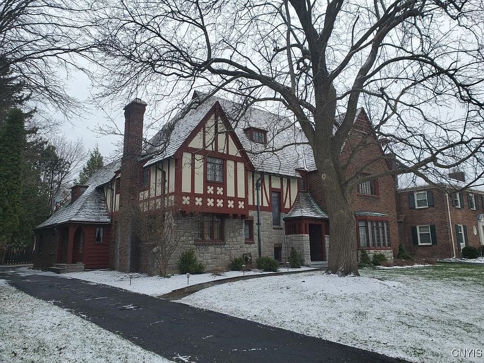 Exquisite and Elegant 1930 Center Hall Colonial with abundant Charm in every room and over 3700 feet of Living space. Have you ever wanted to live in the Luxurious 1900s? With servant's quarters accessed by a back staircase. A magnificent home with all the accoutrements of a lush life. The brick and stone facade welcomes the owner home to a covered porch and a large foyer with a slate floor and views of the impressively refined Dining room and Living Room. Gleaming Hardwoods, Crown Molding, Built in Bookcases, wood burning Fireplace in the Living Room, Bay windows, French doors into the Dining Room with a wet bar in the window bow area. The Leaded windows are impressive and found throughout the home. Off the Dining Room is the screened porch for summer morning coffee and night beverages with family and friends. The stone patio can accommodate those Barbecues we love so much. The Kitchen is charming with Stainless refrigerator & stove and a cozy Breakfast room. The library is currently used as a bedroom & has built in bookcases and access to a half bath in the hall. Ascending the front Staircase, one sees a beautiful Howard Keck Tiffeny stained & painted glass panel, original to the property. On the second floor is the Primary Suite with a primary Bath, two large bedrooms with a Jack and Jill Bath and a fourth bedroom down the hall. The fifth bedroom on the second floor is currently the owner's home office. There are wonderfully convenient built in Armoires and drawers, seats that open to storage. The Stylish drapes stay. Party Central is located in the lower level also with two sets of stairs. A wet bar & a generous space for guests & a wood burning Fireplace for added ambiance. This will be become your favorite place. The property will be sold "as is" and is part of a short sale. Taxes are shown with no exemptions, owner enjoys a STAR of $953. Convenient to SU & LeMoyne, Westcott area, the downtown area, all services. The neighborhood is desirable & Properties sell quickly. This is your chance to own a part of History. According to a local Historian, this house was the Anchor house for the area. We are researching additional information for the new buyer.