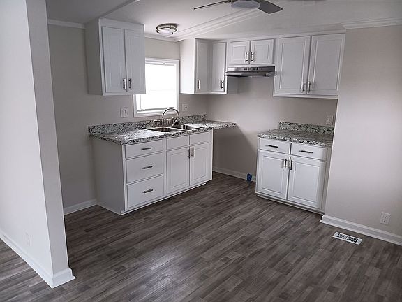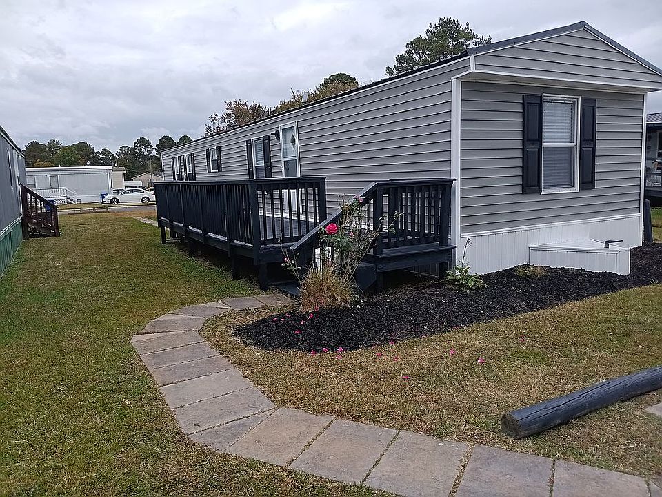 This is a newly renovated mobile home with 2 bedrooms and 2 full baths. This mobile home also has a screened in back porch. The mobile home has all new flooring throughout, paint, lights/ceiling fans, kitchen cabinets, and countertops. The mobile home has brand new siding, windows, with newly stained front and back porches. The bathrooms have all new fixtures, toilets, vanities, and showers/tub. The mobile home sit on a lot and the lot fee is $450/month. But the mobile home is also able to be moved once purchased.