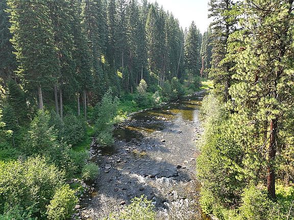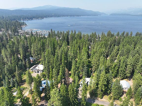 Large home with spacious circular driveway on close to .5 acre in very quiet neighborhood close to both river and lake; 4 minute walk to beach / Rotary Park; 5 minute walk to Shore Lodge; 10 minute walk to town center. Spacious, accommodating floor plan with large Kitchen/breakfast nook/ family room/ dining area flowing outdoors onto the gorgeous large private back deck. Back yard with garden that invites with the sound of a flowing creek with pond under an inviting blue sky in a private forested grove of tall trees. Large detached garage with added open attic storage; wrap around porch connecting large front and back decks; another under-house built in garage/workshop accessible from the basement via laundry room. Master bedroom with en-suite renovated full bath allowing access to back deck. Finished basement; Cozy loft with bonus office or convertible as bedroom. New high end comp shingle roofing; new redwood decking front and back; Upgraded hardwood flooring; many desirable features. Charming house located in an incredible neighborhood (quiet and very country despite having full city access). Must be seen to be fully appreciated. By appointment only. Thank you! Circular driveway, ample parking. Also large front deck; new roof; redwood decking front and back with wrap around porch for privacy and storage. Large, 2.5 car detached garage with added storage. Also a large 400 sq ft. underground garage or workshop with access to the basement. Located in town close to river and lake . This neighborhood feels very country, yet offers all the advantages of an in-town location minus the noise, featuring the best of indoor/outdoor living in a serenely forested, quiet setting. The home has a wood burning stove plus new gas fireplace in the kitchen/family room area. Also it has a new pellet stove in the basement with additional radiant heating in flooring as well, keeping the home cozy and inexpensive to heat.