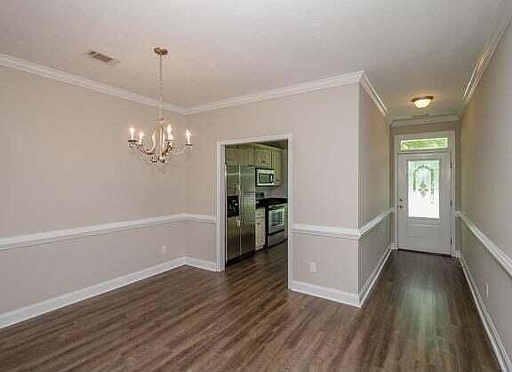 For Rent! Amenity filled neighborhood with sidewalks, street lights, walking trails, pool, clubhouse and much more. This home has wood flooring throughout the foyer, great room, kitchen and dining room. Newer carpet in all bedrooms including the stairs. Fresh paint throughout including trim. 3 bedrooms, 2 baths and nearly 1,500 SqFt of living space and a private backyard area. Riverwood Planation is a great place to live and is sure to impress with is well landscaped common areas.