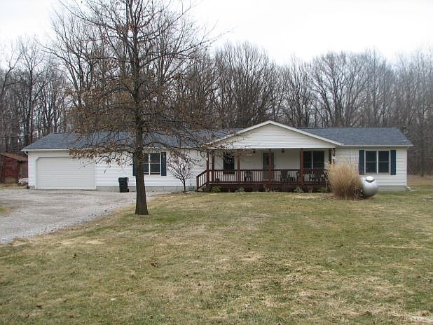 White with slate blue roof and shutters. Large lot facing a park in front and woods in the back yard. Neighborhood Description Large lots, friendly neighbors who are all homeowners