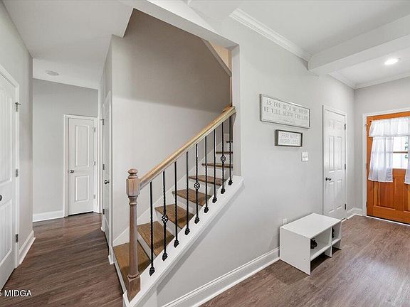 Welcome to this charming fully furnished 4 bedroom, 3.5 bath Craftsman style home, perfectly situated on just over 3 fully fenced acres. The living area offers a cozy fireplace, perfect for gathering and entertaining. The kitchen includes a pantry, an island, and plenty of cabinet storage, ideal for both everyday living and hosting. The spacious master suite is located on the main floor and features his and her closets, a double vanity, and a relaxing layout designed for comfort. Upstairs you'll find three additional bedrooms including a mini master with its own private bathroom, plus another full bathroom for added convenience. With a thoughtful floor plan and plenty of space both inside and out, this home offers the best of quiet country living while still being conveniently located to Gray, Macon, and Milledgeville. Seller will pay up to $4,000 towards closing with full price offer.