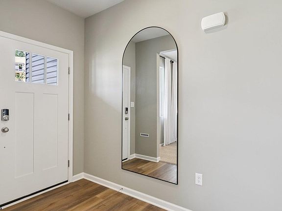 Back on the Market due to no fault of its own! This home will be ready prior to the Thanksgiving Holiday! This charming home boasts a classic stone-front exterior and a welcoming covered front porch, setting the tone for comfortable living. The modern, open-concept main floor features pristine white cabinets and warm-toned luxury plank flooring, creating a bright and inviting atmosphere. Beyond the living space, a beautifully finished basement offers a versatile recreation room, providing extra living area and ample storage options. The basement is thoughtfully plumbed for a future bathroom, allowing for easy expansion and customization. Accessibility from both the inside and outside of the home adds to the convenience and functionality of the basement space. The white siding with a greyish blue accent color creates a striking visual appeal. The backyard, a tranquil escape, opens to a picturesque treeline, offering a sense of privacy and providing an ideal setting to enjoy the local wildlife.