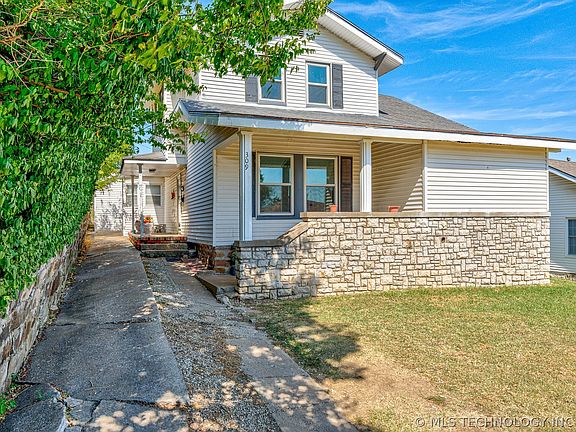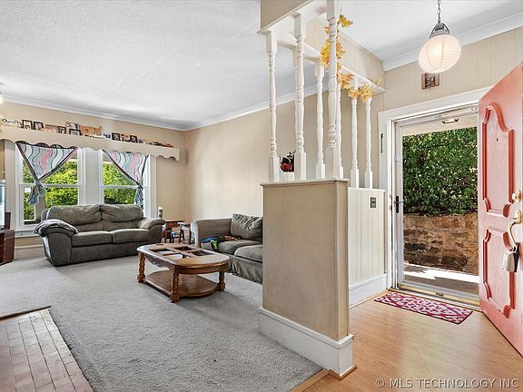 So much room in this 4 bedroom, 2 full bath home. 2 living areas, wood beam ceilings and wood burning fireplace in one living area. Formal dining room with built in cabinets, double sink vanity in master bath, his and her closets in master bedroom, cedar closet in upstairs hall, 2 car detached garage with work area and alley access.
