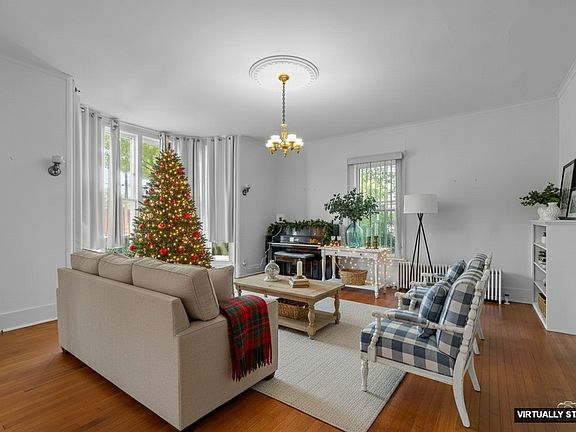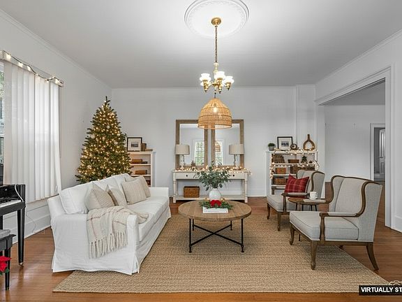 Timeless architectural detailsStunning inlaid hardwood floorsOriginal hardwood floorsMagnificent antique china cabinetAdjoining breakfast roomLarge bay windowNewer oversized garage