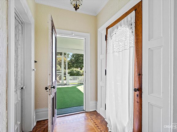 Step Back in Time - Where Craftsmanship Meets Timeless Elegance. Experience the charm and character of a bygone era in this stately historic home, a true testament to quality craftsmanship and attention to detail. Nestled in one of Sandwich's most established, tree-lined neighborhoods, this remarkable property has remained in the same family since it was built - and now, for the first time, it's ready to welcome new owners. As you enter the grand foyer, you'll be captivated by the original stamped tin ceiling and walls, complemented by stunning inlaid hardwood floors. The inviting parlor, with its soaring 9-foot ceilings and large bay window, offers a perfect space to relax or entertain. A formal dining room featuring a magnificent antique china cabinet and spacious butler's pantry adds elegance and functionality. The main floor also includes a formal living room and two versatile bedrooms that can easily serve as a home office, library, or playroom. The vintage kitchen and adjoining breakfast room exude warmth and character, providing plenty of room for family gatherings and daily living. Upstairs, you'll find four additional bedrooms, including two expansive suites with cozy sitting areas, plus a full bath. A walk-up attic offers excellent storage or the potential for additional living space. Enjoy quiet evenings on the newer, handicap-accessible deck or relax in the screened-in porch overlooking the nicely sized yard. A newer, oversized garage provides ample space for cars, toys, and storage. With its original hardwood floors, beveled glass windows, and timeless architectural details, this home is a rare find - blending historic charm with everyday livability. Conveniently located near schools and within walking distance to downtown Sandwich, this classic beauty is truly one of a kind. Homes like this don't come along often - don't miss your chance to own a piece of Sandwich history!