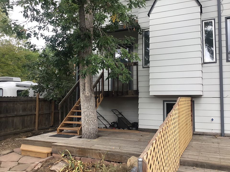 West unit in quiet duplex. New carpet, new paint, new blinds, new countertops, very clean. Includes large fenced yard, with parking for 2 cars off the alley. Perfect location in old town Lafayette. Walking distance to public transportation, recreation center, schools, farmers market, and restaurants on S.public road. Garden level basement has over 400 square feet of useable space with washer/dryer included. This is a unique unit that you have to see to appreciate, with vaulted ceilings, balcony, skylight, fireplace, decks, dishwasher, ceiling fan, and a lot of light for your houseplants. Extensive renovations are complete, and unit is like new inside. I am very flexible for showings. Call or text 9am - 2pm for best results.