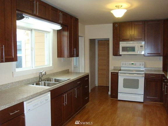 Delightful home in Cosmopolis. Fresh NEW kitchen for the person who loves to cook. Efficiently designed with ample storage, counter space & breakfast nook. Free-standing propane stove in the living room provides extra warmth to snuggle up by. Roomy laundry room with a wall of cabinets for extra storage. Fully fenced landscaped yard with a covered patio bordered by trees, shrubs & lawn providing extra privacy. This home has been remodeled throughout to include vinyl windows & newer roof and more