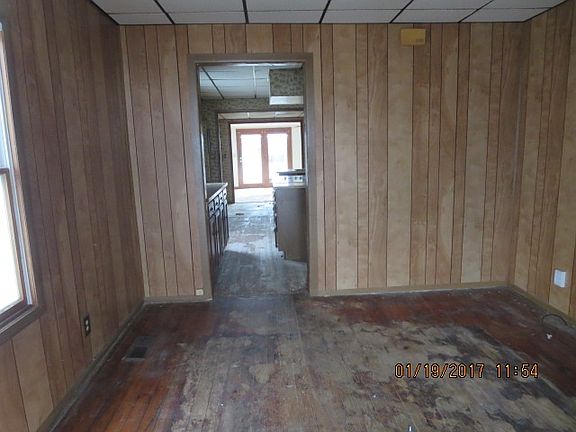 Great convenient location! Fenced yard and detached 1 car garage. Could be easily converted back into 2 bedrooms. Huge eat-in kitchen and large family room. Needs TLC.