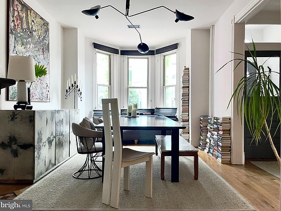 Flooded with natural light and brimming with character, this architecturally distinctive LeDroit Park residence seamlessly blends historic charm with modern convenience. High ceilings, hardwood floors, and original pocket doors set the tone for gracious living throughout. On the main level, a spacious living room with decorative fireplace flows into a large dining room, perfect for entertaining. The updated table-space kitchen features newer appliances and opens directly to a private rear patio, an ideal retreat for outdoor dining and open air relaxation. Upstairs, the expansive primary bedroom boasts a bay window with soaring ceiling height. Two of three bedrooms are generously sized to accommodate king beds. A full bath with updated fixtures and tub completes the second floor. The lower level offers an unfinished basement, providing excellent potential for additional finished living space. A utility area with tankless water heater and gas boiler ensures efficient radiator heat, while a full-size washer/dryer and ample storage opportunities complete this level , ready for imaginative finishes of your choice. Finally solar panels cover the roof, significantly reducing monthly utility expenses Set within one of Washington’s most vibrant and engaged communities, the home enjoys direct access to The Park at LeDroit—a neighborhood hub with a community farm and weekly farmers market, shared garden plots, renovated dog park, and seasonal splash pad. Over $2M in recent park improvements underscore the commitment to community living and quality of life in this welcoming urban village. All of this in a quiet residential setting, just steps from Shaw’s Tavern, The Royal, Red Hen, and the established restaurants and nightlife of the U Street corridor. Set in LeDroit Park, celebrated since 1873 for its architectural distinction and rich history, highlighted by Anna J. Cooper Circle Park, this home is a rare opportunity to own a piece of D.C. history with every modern amenity.