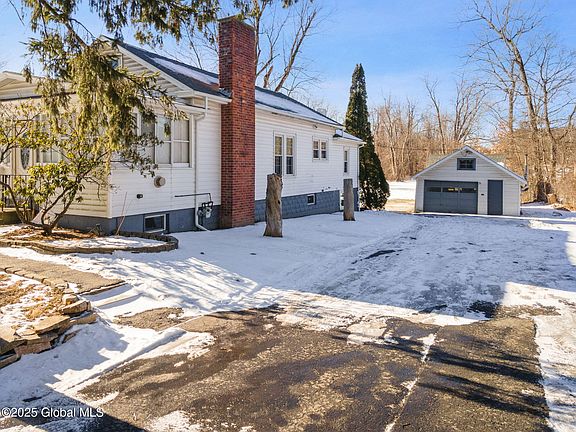 OPEN HOUSE SUNDAY 2-2-25 from 12pm-1:30pm. Charming two bedroom, one and half bath bungalow nestled on over three quarters an acre in the desirable Bethlehem School District, home to Hamagrael Elementary. This inviting property features luxury vinyl plank flooring throughout, a formal dining room, and a partially finished basement with laundry and a bonus room. Enjoy the convenience of two garages, one equipped with propane heat and a wood stove—perfect for hobbies or extra storage. Owned by the same family for 29 years, this home offers a unique opportunity to create lasting memories in a welcoming neighborhood. Close to the highways, Glenmont, Albany, Slingerlands and more. Don't miss out on this gem!