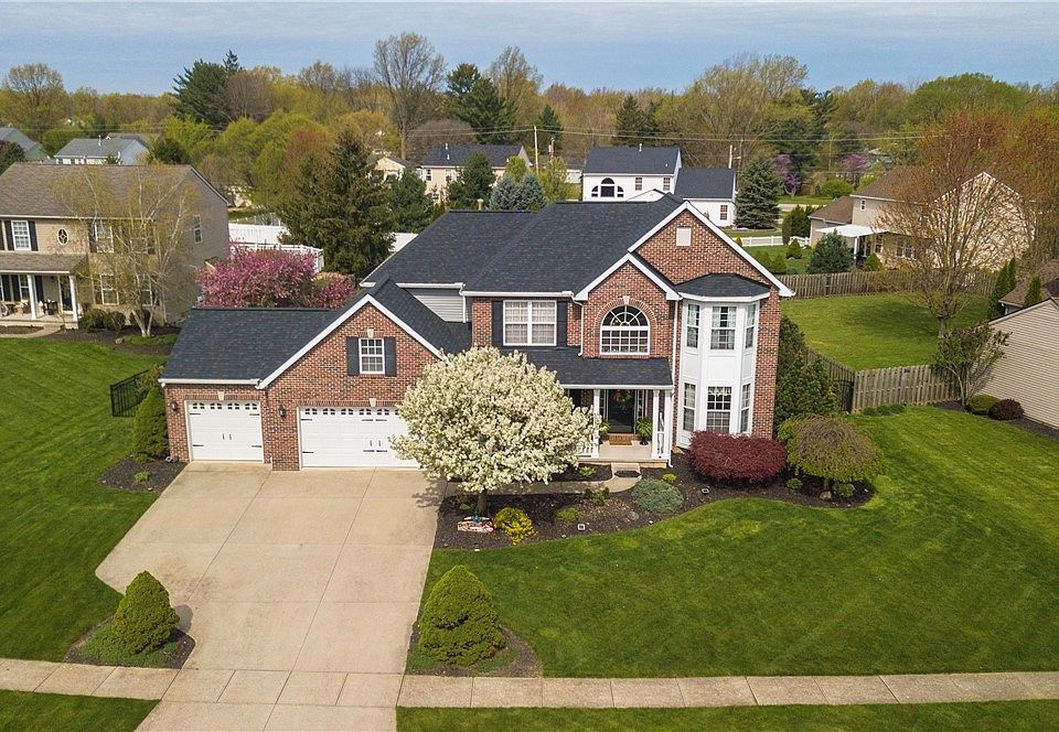 Get Ready to Move! Welcome home to this beautiful, well-maintained brick-front Colonial with a three-car attached garage, located on a quiet cul-de-sac in the Rivers Edge development in the Amherst School District! As you enter the home you are greeted by a grand two-story foyer with the dining room on the left, and a living room on the right. The whole first level of the home has brand new LVP flooring. Once you pass through the foyer, you enter the Great Room which features a wood-framed tiled gas fireplace, then into the oversized eat-in kitchen with a center island, new LG Stainless Steel appliances, and plenty of cabinets for storage, a Morning Room offering beautiful natural light with a sliding door leading to the backyard. Past the kitchen is the mud room leading to the garage as well as the laundry room. There is also a half-bath located between the kitchen and dining room. The second level features four generously sized bedrooms and two full baths. The owner’s suite features two walk-in closets, a large bath with double vanity, walk-in shower, and a full-sized soaking tub. The home has a fully finished basement including a bar and offers an abundance of room for entertaining, and storage areas. The large beautifully landscaped backyard has plenty of entertaining space, is fully fenced and includes a concrete patio with a pergola, bar and wrought-iron archway trellis leading to a secondary patio space and a storage shed. The home includes a brand-new roof, sprinkler system for the front and side yards, newer hot water tank and newer sump pump. This home is completely Move in Ready, so all you need to do is unpack your bags!! You do not want to miss out on the opportunity to call this beauty home! Call for a showing today!