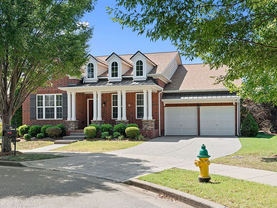 Mostly ONE-LEVEL living in the desirable, quaint & picturesque community of Barclay Place. Enjoy porch living on a quiet, cul-de-sac in this charming home. The home boasts amazing outdoor space with two covered porches in both the front and back of the home. The huge covered porch in the back allows for enjoyable outdoor dining and lounging. An expanded patio in the backyard, just off the porch, offers a stone fireplace to cozy up to with family & friends. The home is Certified Green (Bronze Level). This wonderful, move-in ready home features 3 bedrooms & 2 full baths on the main level & an enormous bonus room, walk-in closet/storage, bedroom & full bath upstairs. Enjoy an open floor plan with spacious rooms & arched doorways. Built-in bookcases flank the cozy fireplace in the great room. You will love preparing meals & entertaining in the spacious kitchen that boasts an island, pantry, eat-in breakfast area and raised bar countertop. Abundant windows flood the rooms with generous, natural light. The home was recently painted throughout, offers new eco-friendly carpet & pad, new roof in 2024, new quartz countertop, new sinks & frameless shower door in primary suite, new faucets in primary bathroom & kitchen, new microwave & all new toilets. The community offers inviting, tree-lined streets, sidewalks, spacious green space, a park with fire pit, grilling area & play set. You will love the convenience to Historic Downtown Franklin (7 minutes), Westhaven shopping & restaurants (7 minutes), golf, grocery, The Factory at Franklin (10 minutes) and the nearby parks and trails. Annapolis III floor plan built by The Jones Company. Come and fall in love with this house!